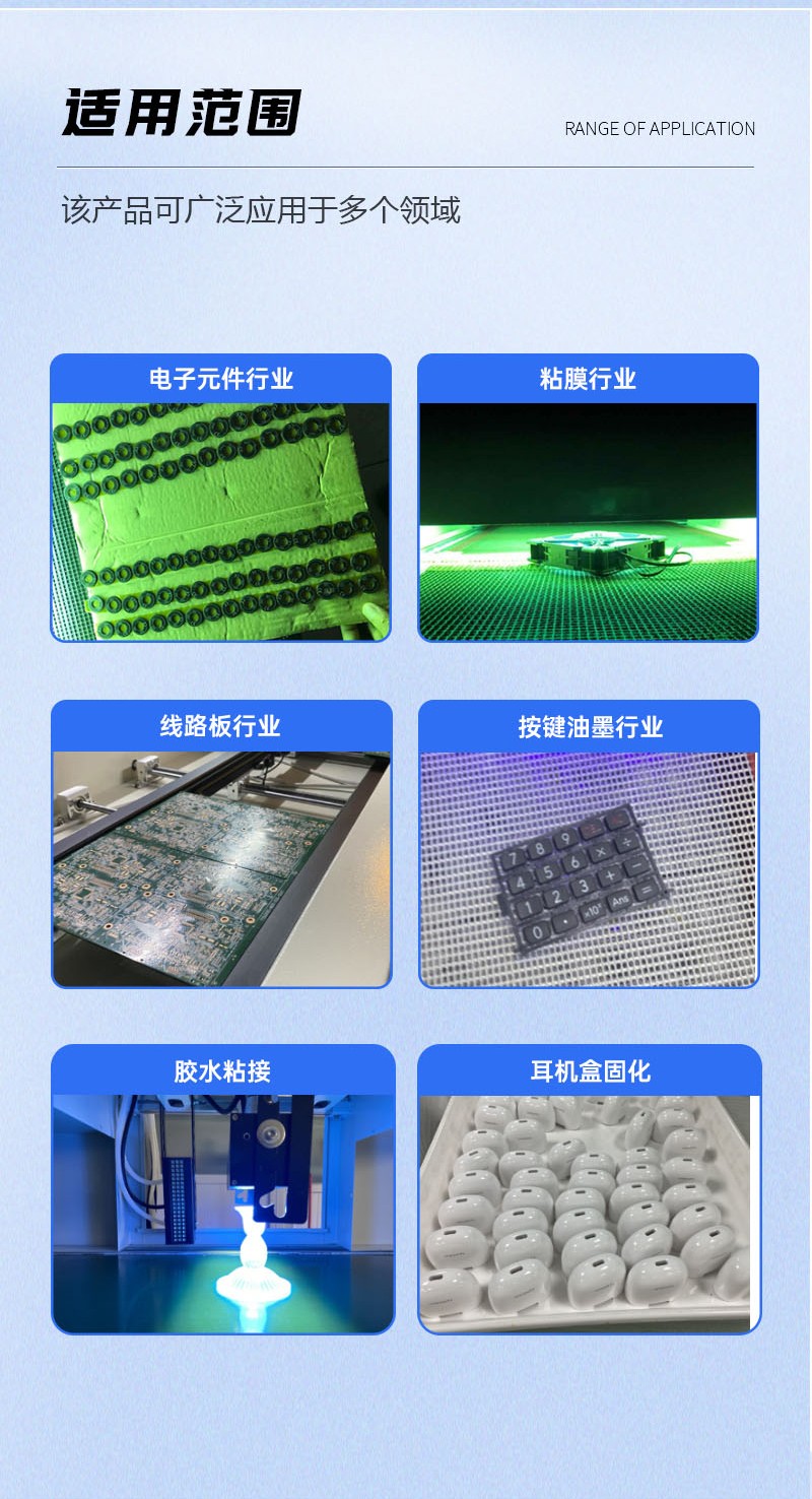 【適用范圍】各類UV膠水油墨油涂料固化